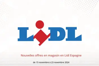 Lidl Espagne annonce de nouvelles réductions intitulées « Nouvelles offres en magasin » disponibles jusqu'au 23 novembre 2024, de nouvelles offres et prix uniquement en Espagne.