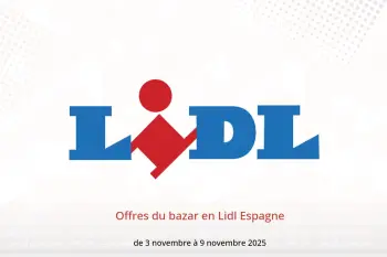 Lidl Espagne annonce de nouvelles réductions intitulées « Offres du bazar » disponibles jusqu'au 9 novembre 2025, de nouvelles offres et prix uniquement en Espagne.